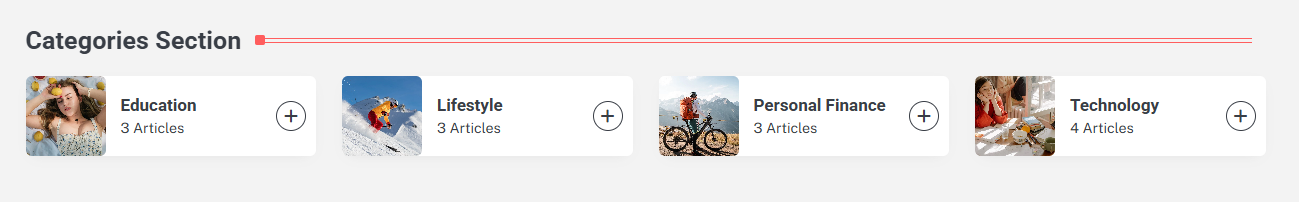 You can set the pages/posts/categories for the Categories Section and set different other options for the Categories Section.
