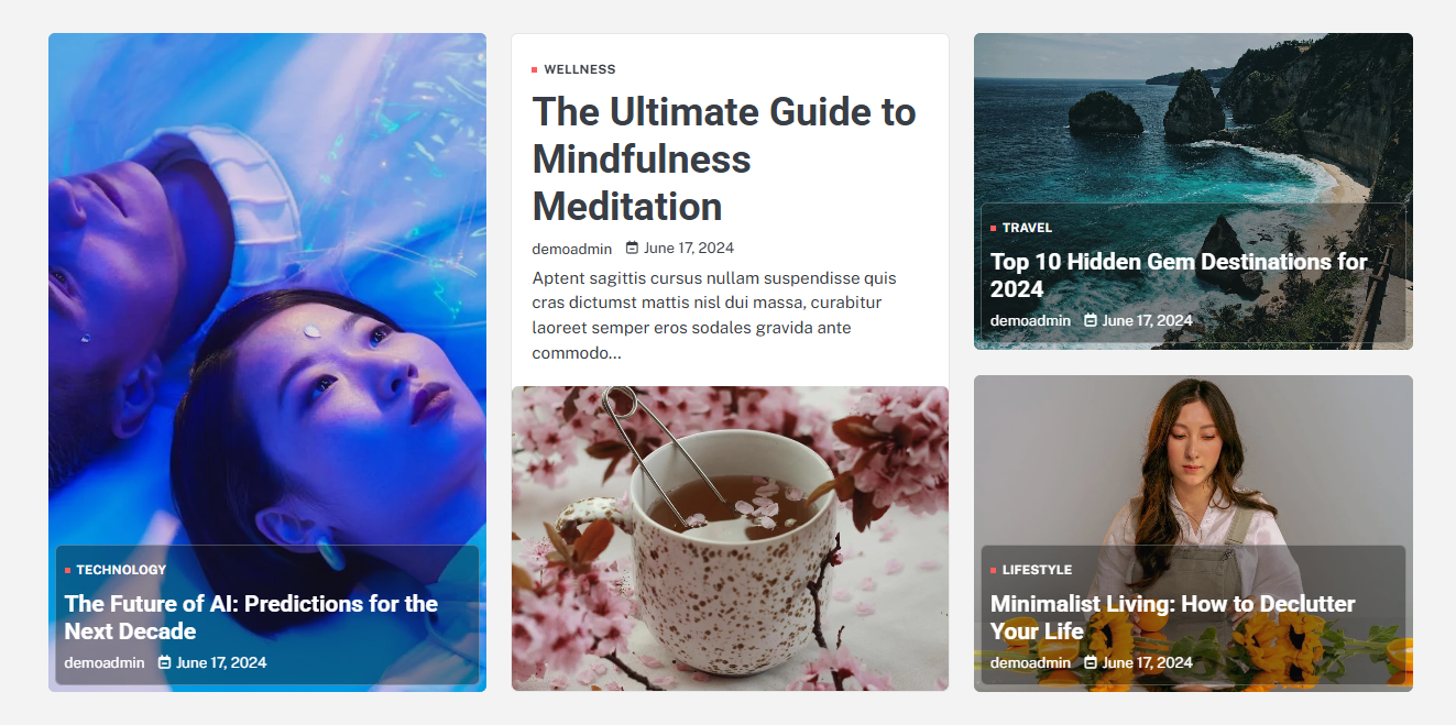 - Selecting Post/Category as Content Type allows you to select a post (Existing post)/ Category to display the title, featured image, and content of that selected post.