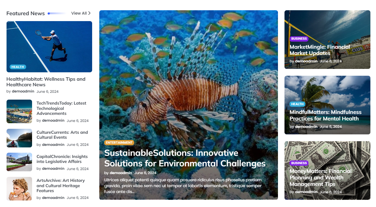 - Section Title: This setting allows the user to set the Featured News Section title.