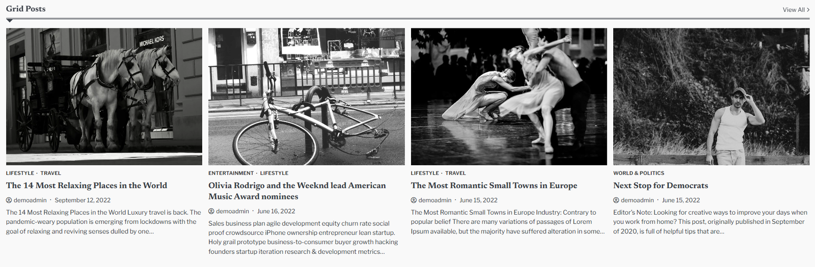 • To configure the Post Grid Section. You need to navigate from Admin Panel > Appearance > Customize > Front Page Options > Post Grid Section.