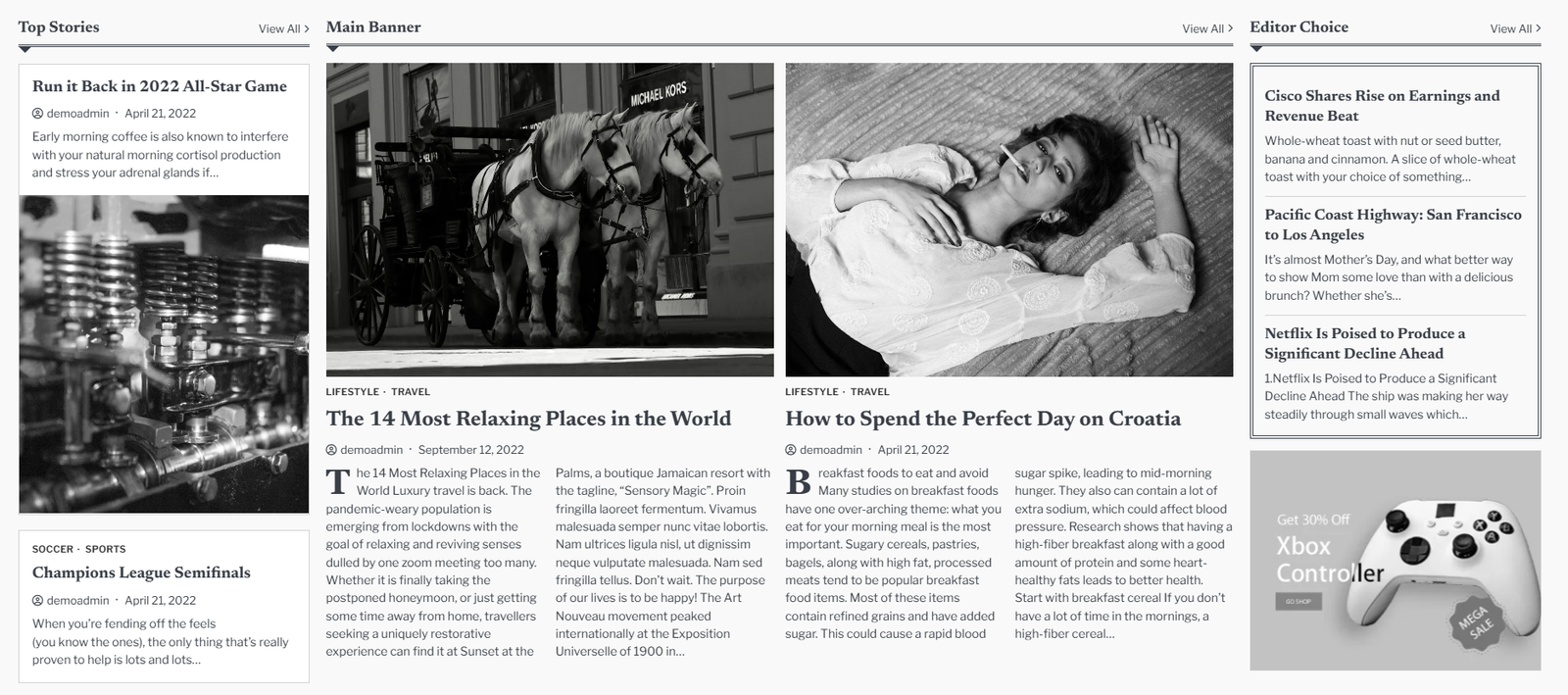 • Editor’s Choice Section (This setting is only visible in banner style 1):