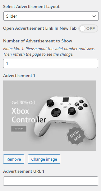 • Advertisement Image: This setting allows you to add the advertisement image.