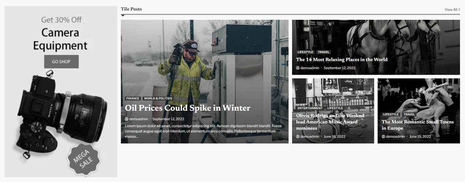 • To configure the Post Tile Section. You need to navigate from Admin Panel > Appearance > Customize > Front Page Options > Post Tile Section.