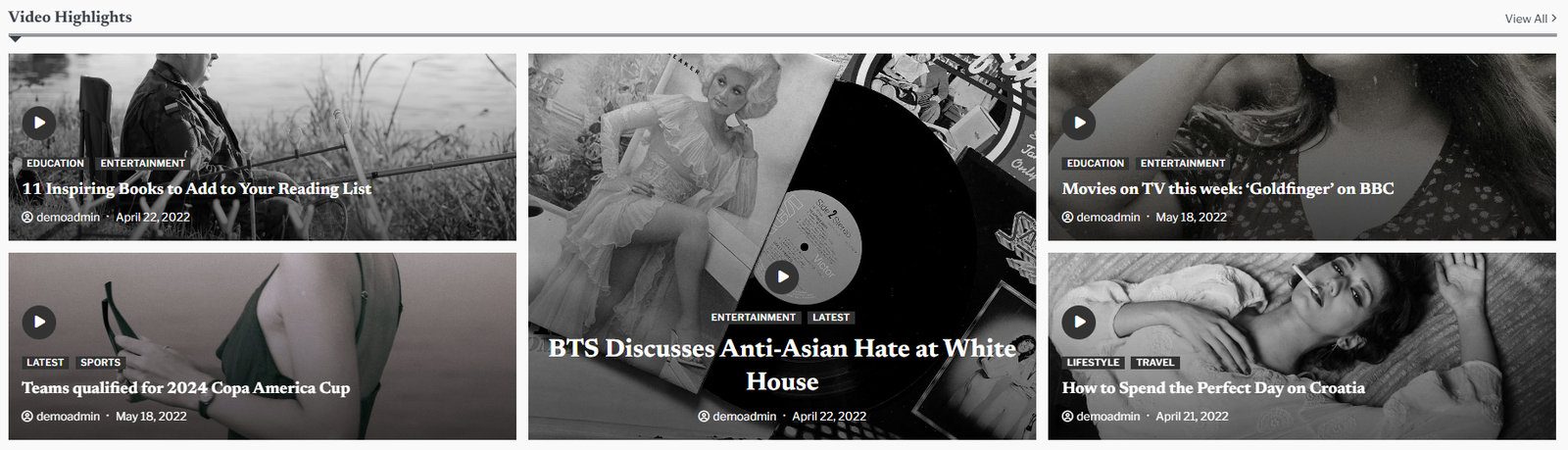 You can set the pages/posts for the Video Section and set different other options for the Video Section.