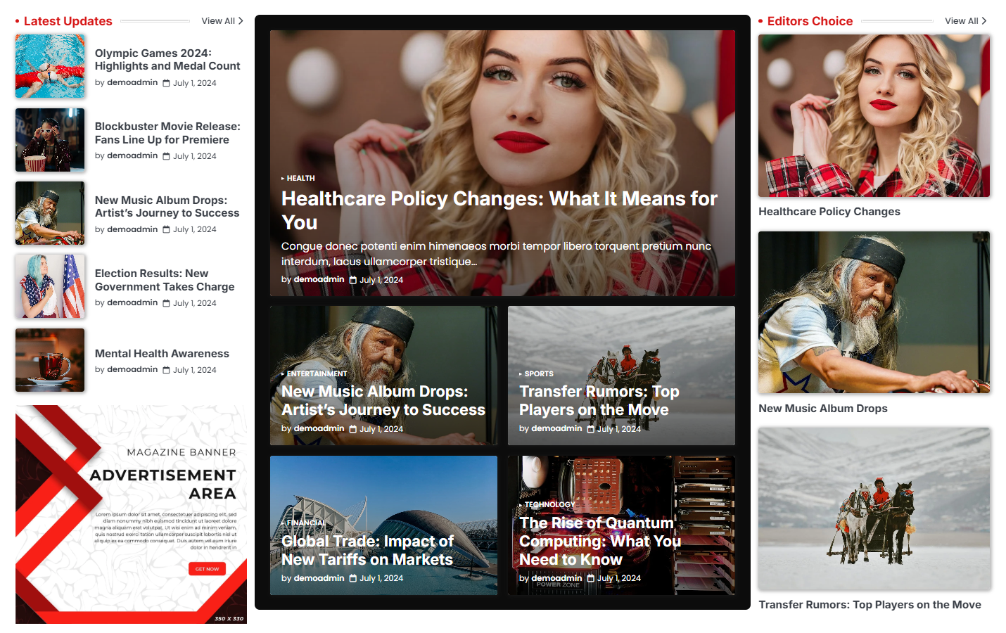 - Editor Choice Section ( *Note: This setting is only visible in banner style 1 and style 2):