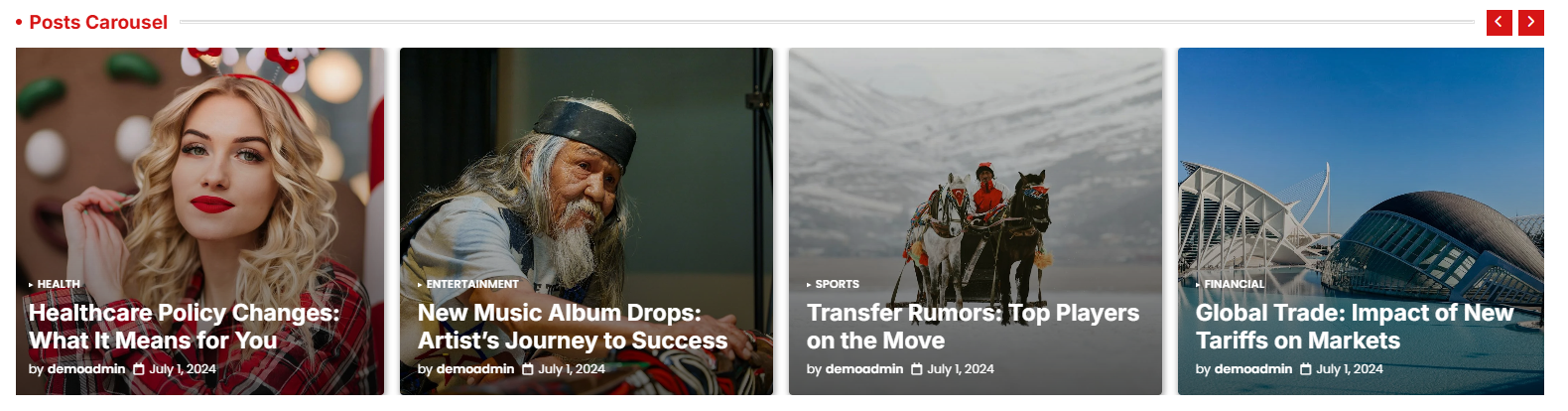 - Right after enabling the Post Carousel Section, you can set the following settings: