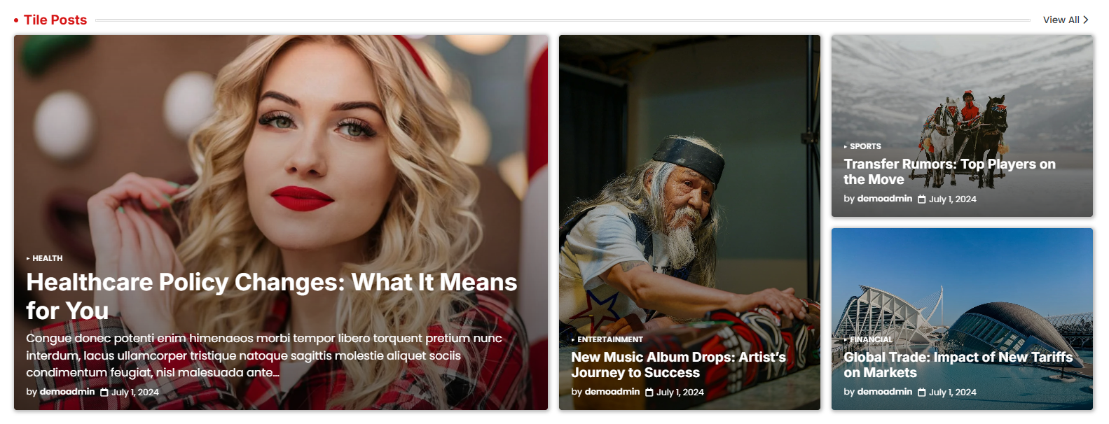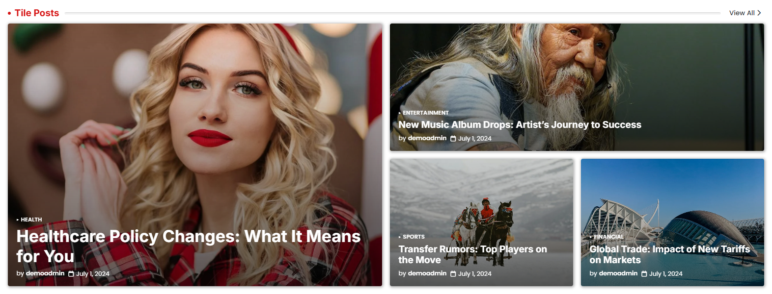 - Section Style: This setting allows you to select between two different styles for the Posts Tile Section. You can select the preferred style for the section.