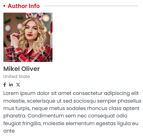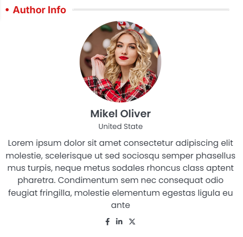 - Select Style: This setting allows you to select between the two styles for the Author Info Widget. You can select the preferred style for the section.