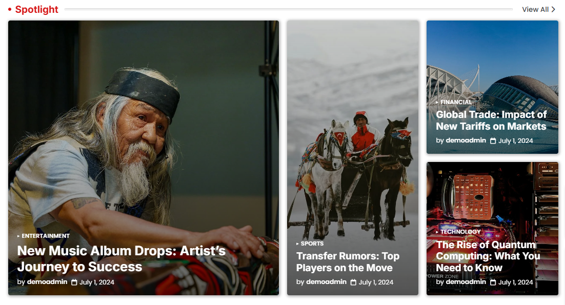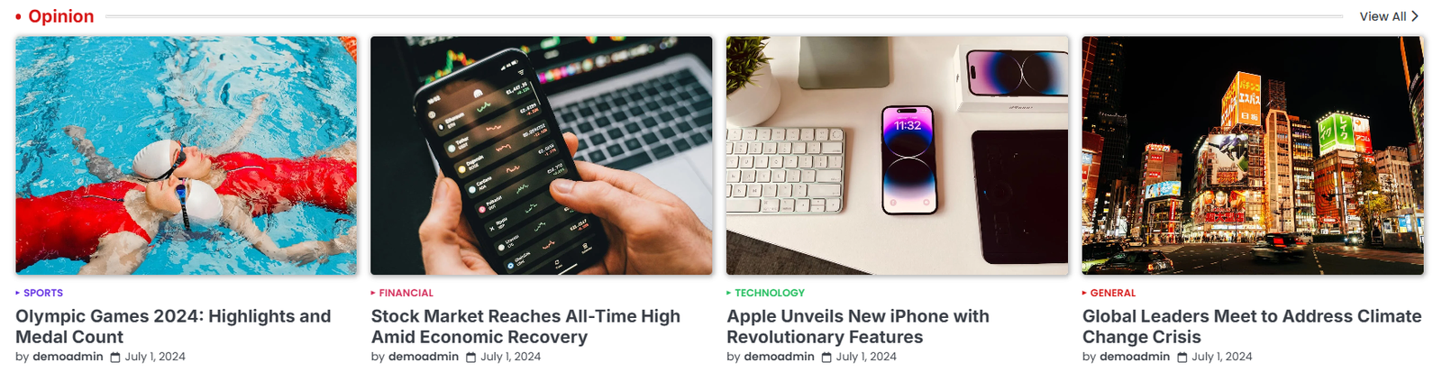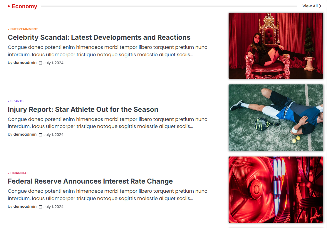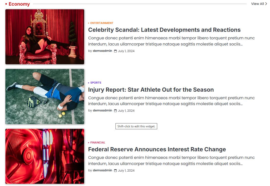 - Style 1: This style will display the List Posts Thumbnail widget as below: