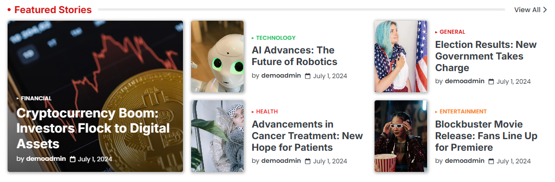 - View All Button URL: This setting allows the user to set the link for the button. *Note: if this field is empty, it will direct to the category page.