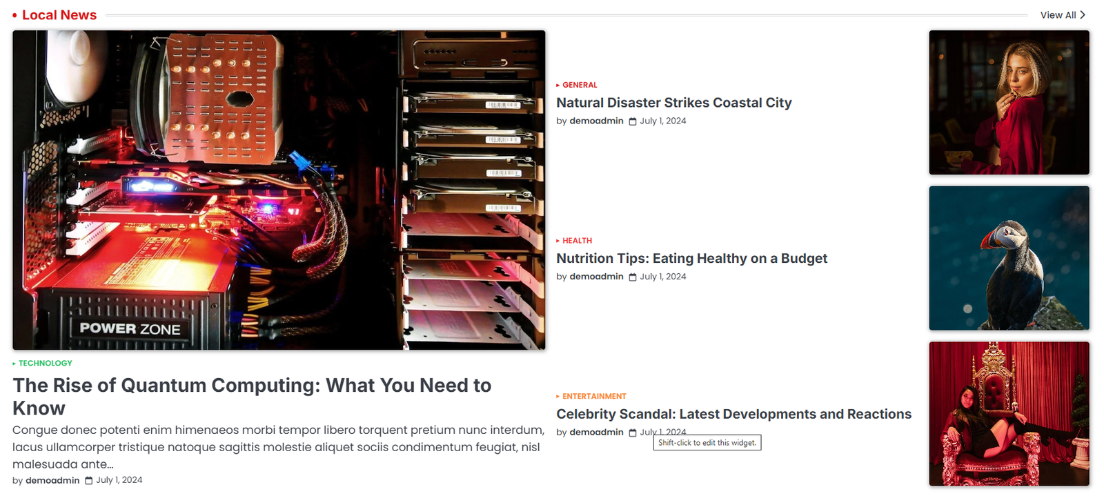 - Section Title: This setting allows the user to set the title for the first Posts Tile and List Widget.