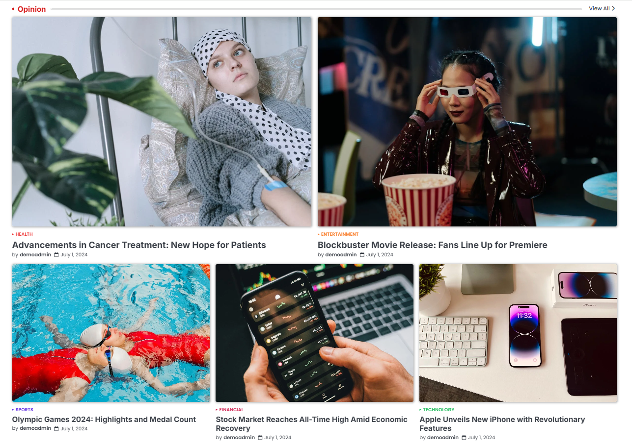 - Section Title: This setting allows the user to set the title for the first Posts Grid Widget.