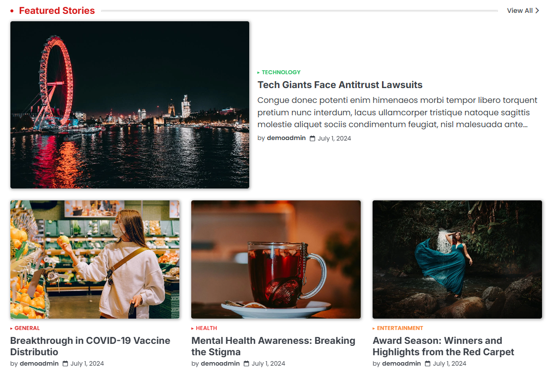 - Selecting Category: You can select the first category – select an Existing Category to display the title, featured image, and content of that selected post/page for the Posts Carousel Widget.