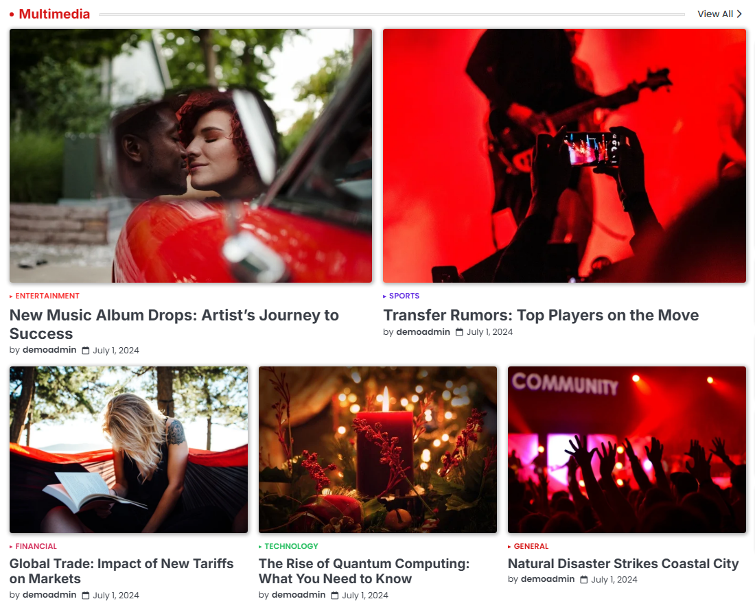 - Section Title: This setting allows the user to set the title for the first Grid Posts Widget.