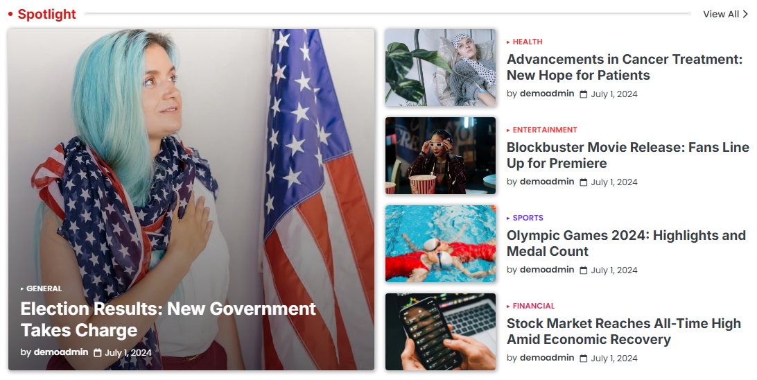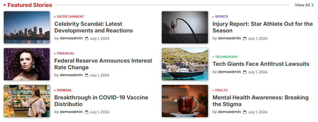 - View All Button URL: This setting allows the user to set the link for the button. *Note if this field is empty it will direct to the category page.