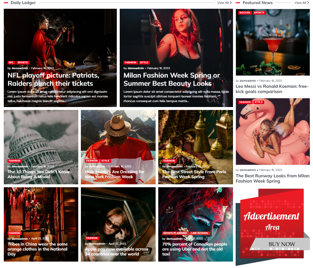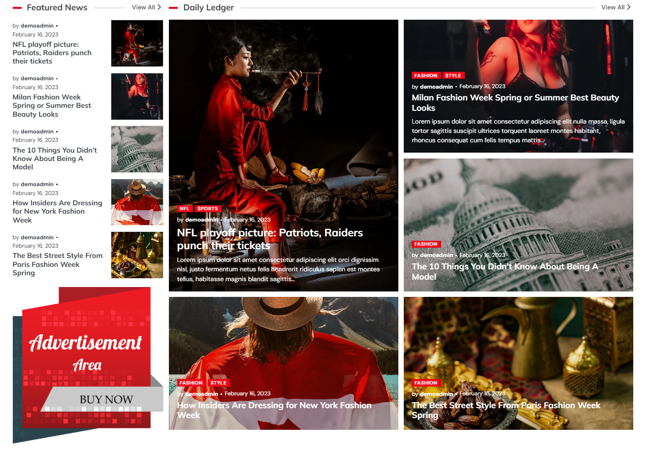 • Advertisement Section: ( *Note: This setting is only visible in banner style 1 and style 2.)