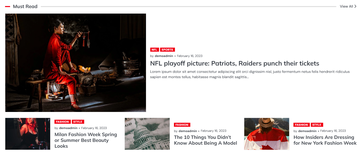 You can set the pages/posts/categories for the Must Read Section and set different other options for the Must Read Section.