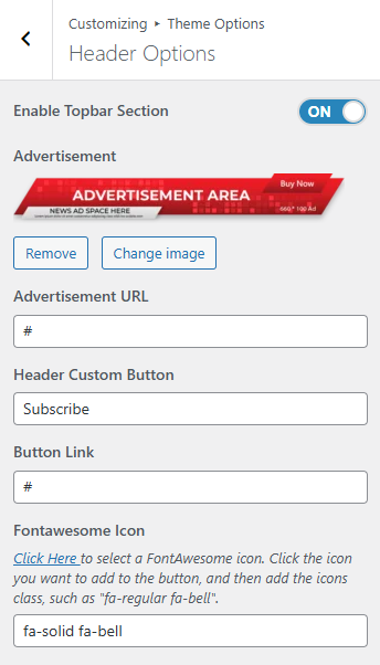 - Advertisement Image: This setting allows the user to set the header advertisement image.