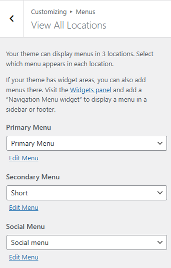 After creating the new menus, you can set the different menu locations, from > Customize > Menus > Menu Locations. The menu will be displayed in the selected location.