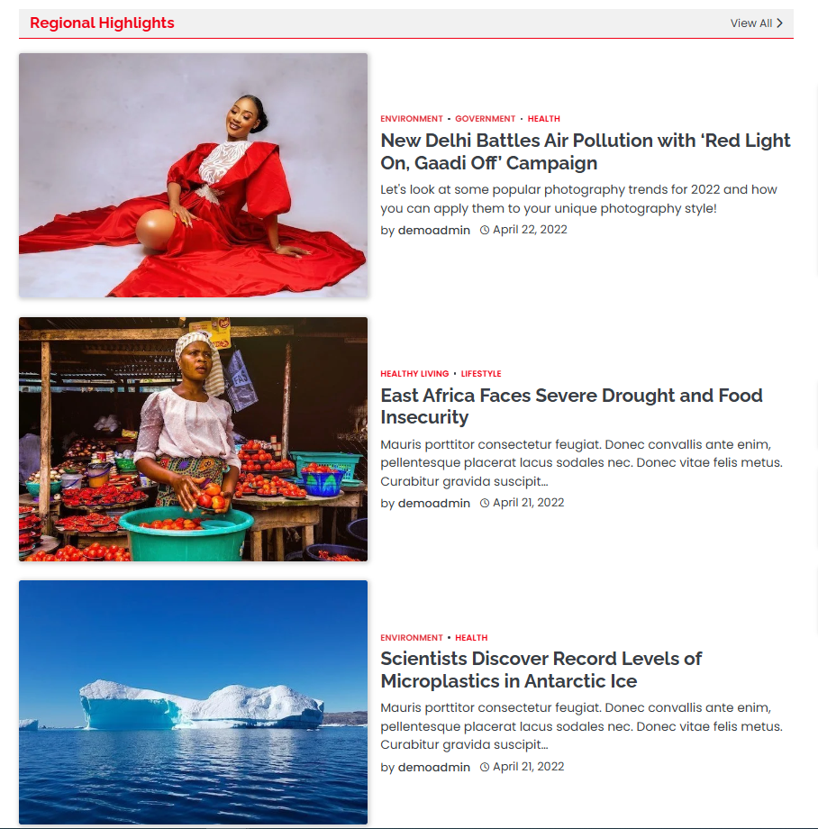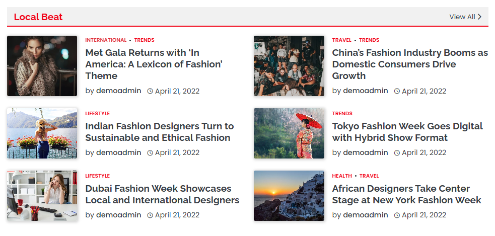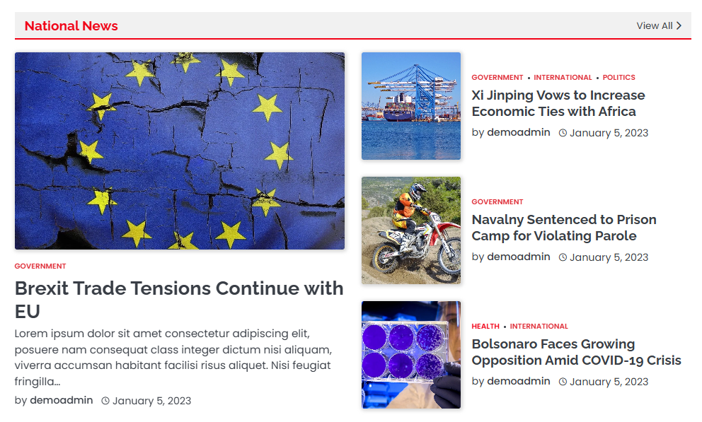 • Section Title: This setting allows the user to set the title for the first Grid and List Posts Widget.