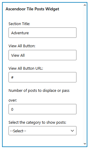 • After selecting the widget section, click on the Add a Widget button, then select the Ascendoor Posts Tile Widget the user will see the following options: