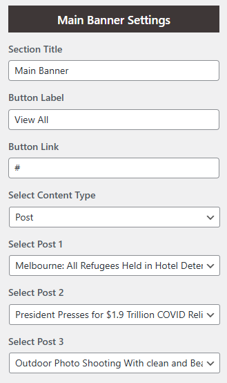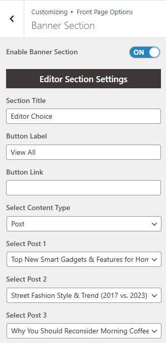 You can set the banner posts and set different other options for the banner section.