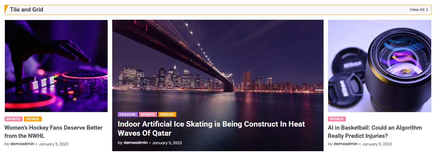 You can set the posts/categories for the Tile Grid Section and set different other options for the Tile Grid Section.