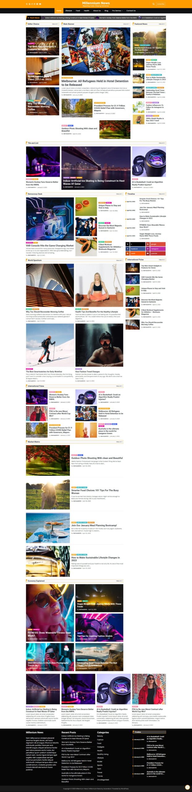 Millennium News is a sleek, contemporary WordPress theme crafted for news websites, online magazines, and content-rich platforms. Featuring a clean, minimalist design and an intuitive layout, it provides versatile customization options, including adjustable color schemes and widget-ready sections for easy personalization. Built with performance and SEO in mind, the theme delivers fast loading speeds while enhancing search engine visibility. Its fully responsive structure ensures a seamless viewing experience across all devices and browsers, making it an ideal solution for bloggers, journalists, and digital publishers.