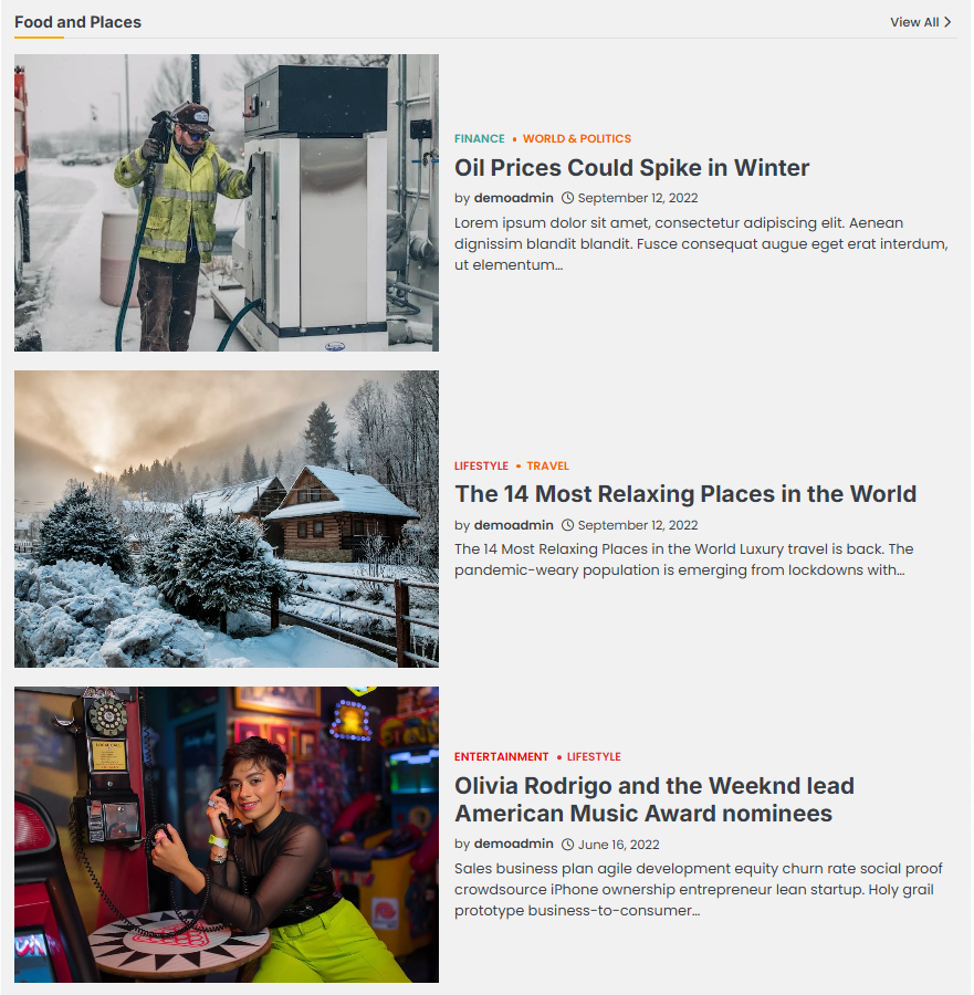 - To configure the Tile and List Posts Widget, you need to navigate from Admin Panel > Appearance > Customize > Widget > Widgets Section.