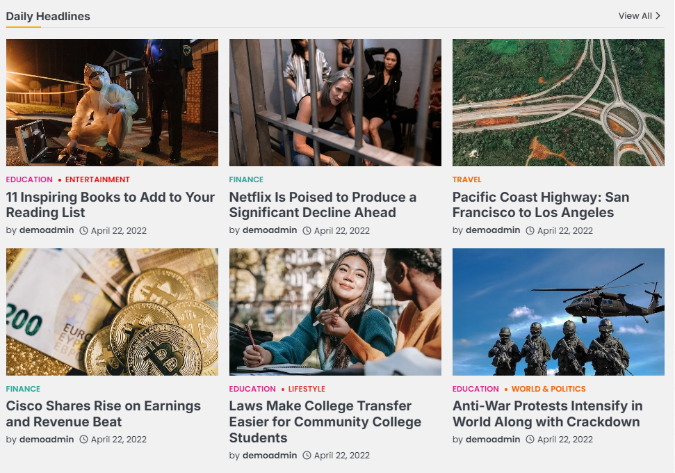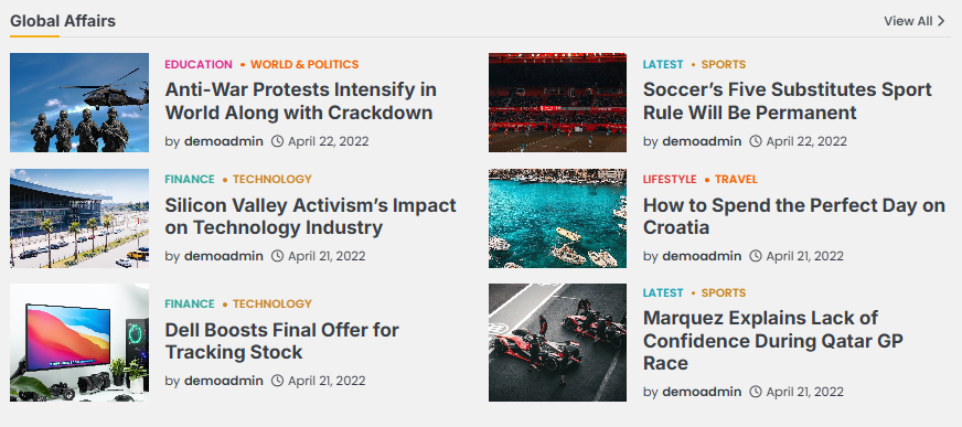 - Section Title: This setting allows the user to set the title for the first Grid Posts Widget.