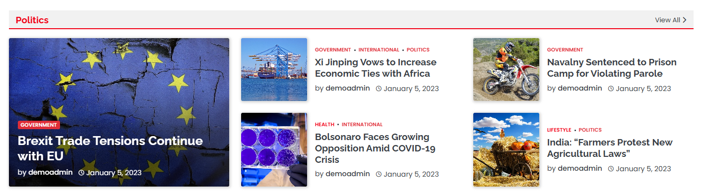 - Section Title: This setting allows the user to set the title for the first Grid and List Posts Widget.