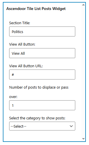 - After selecting the widget section, click on the Add a Widget button, then select the Ascendoor Posts Tile and List Widget the user will see the following options: