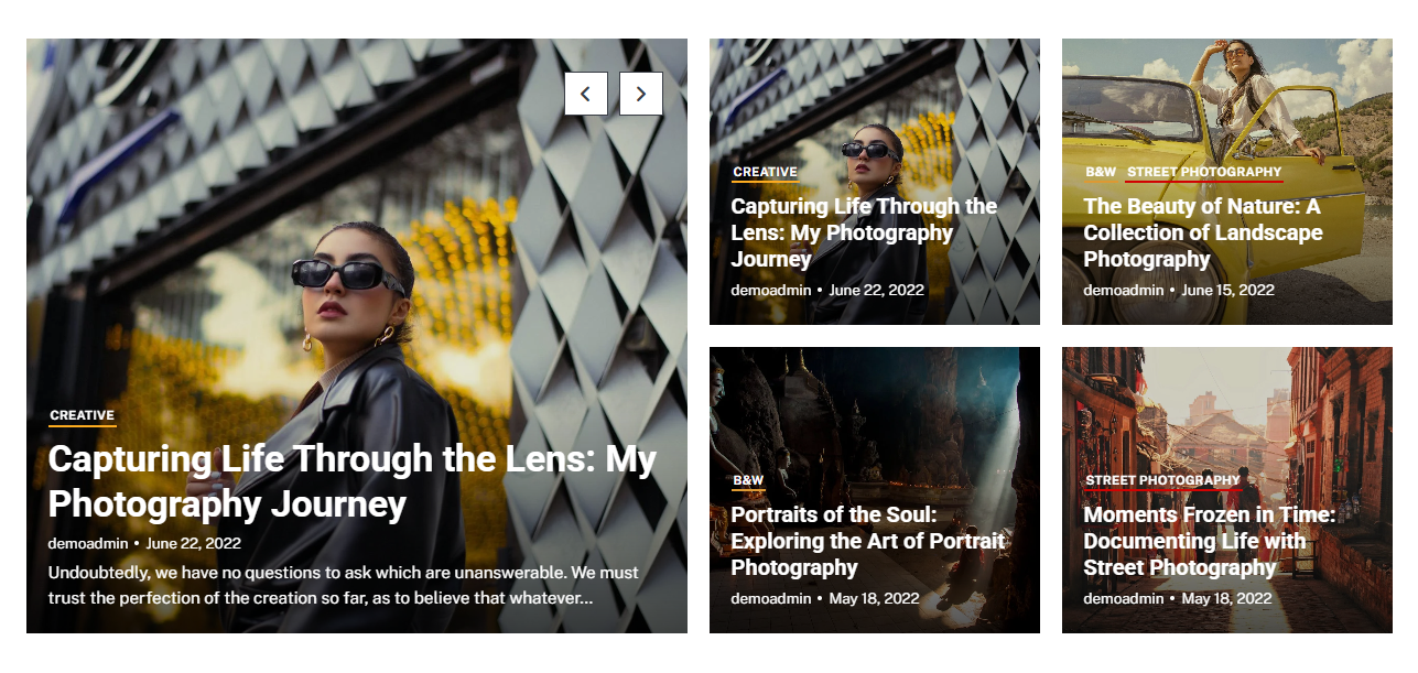 - Select Style: This setting allows you to select between two different styles for the Grid Posts Section. You can select the preferred style for the section.