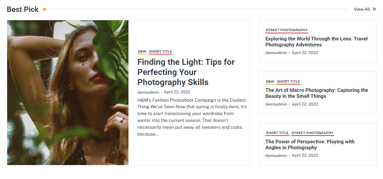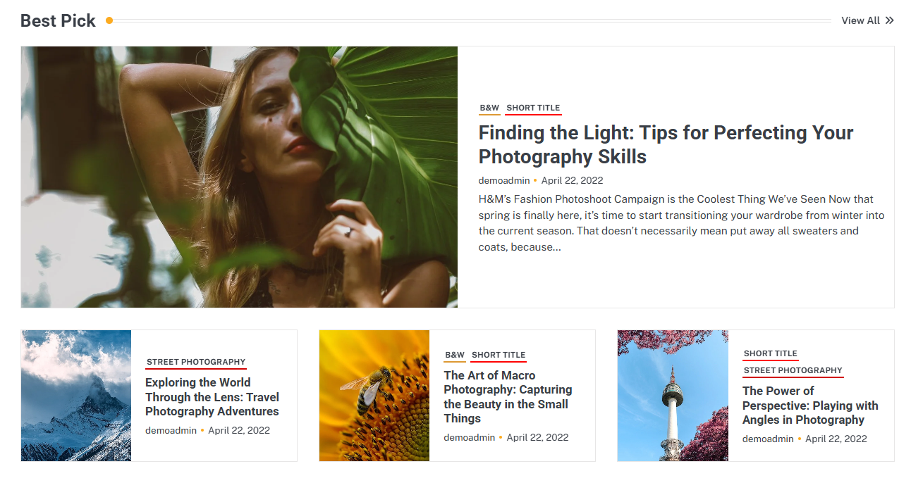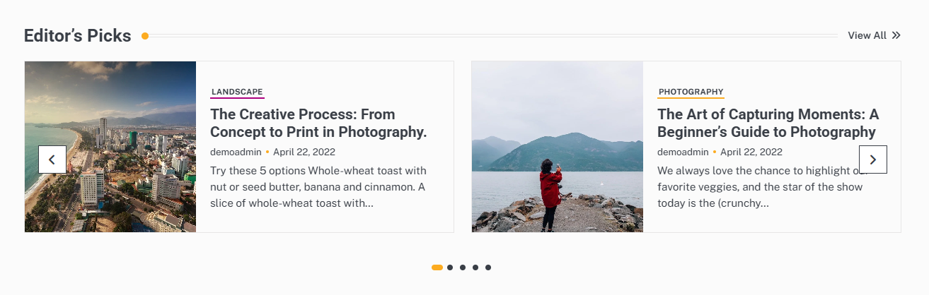 - Select Style: This setting allows you to select between two different styles for the Editor Choice Section. You can select the preferred style for the section.