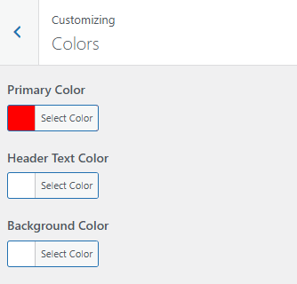 - Header Text Color: This setting customizes the Header text color of the site.