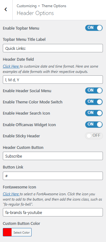 - Enable Header Search Icon: This option allows the user to enable/disable the topbar search icon.