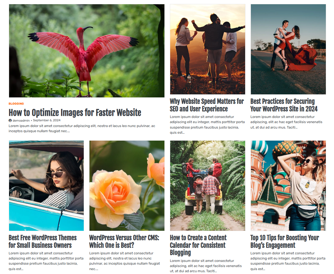 • Selecting Post/Category as Content Type allows you to select a post (Existing post)/ Category to display the title, featured image, and content of that selected post.