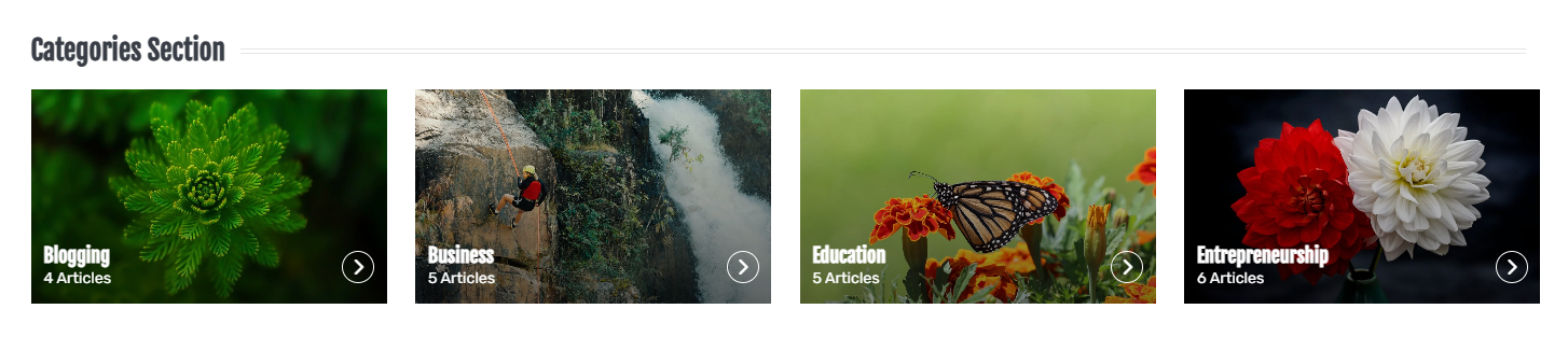 • To configure the Categories Section. You need to navigate from Admin Panel > Appearance > Customize > Front Page Options > Categories Section.