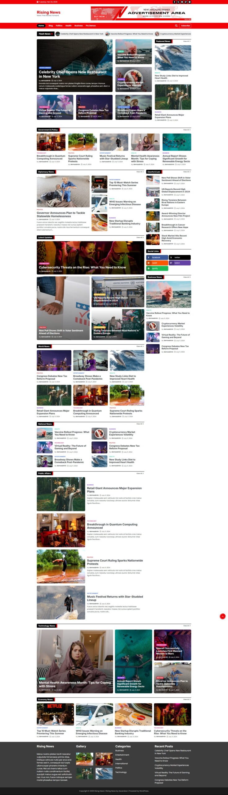 Rising News is a sleek and modern WordPress theme built for news websites, online magazines, and content portals. Featuring a minimalist design and intuitive layout, it offers a variety of flexible layout options, customizable color settings, and widget-ready areas for easy personalization. The theme is optimized for speed and SEO, ensuring fast load times and improved search engine rankings. With a fully responsive design, Rising News delivers a seamless browsing experience on all devices and browsers, making it ideal for bloggers, journalists, and content-focused publishers.