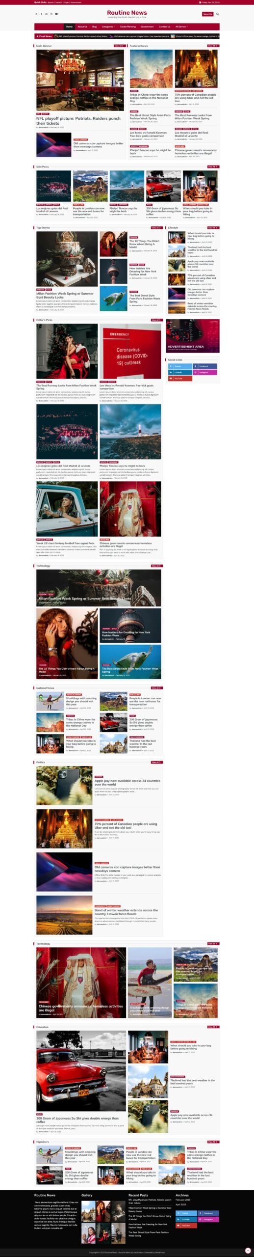 Routine News is a modern, streamlined WordPress theme designed specifically for news sites, online magazines, and content portals. With its minimalist aesthetic and user-friendly layout, this theme offers flexible design options, customizable color schemes, and widget-ready areas for effortless personalization. Optimized for speed and SEO, it ensures fast loading times and boosts your site’s visibility on search engines. The fully responsive design guarantees a smooth browsing experience across all devices and browsers, making it the perfect choice for bloggers, journalists, and content creators.