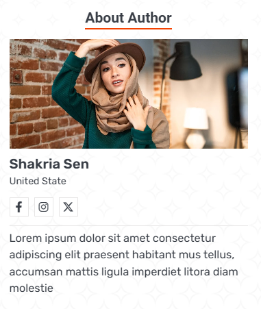 - Style 1: This style will display the Author Info widget as below: