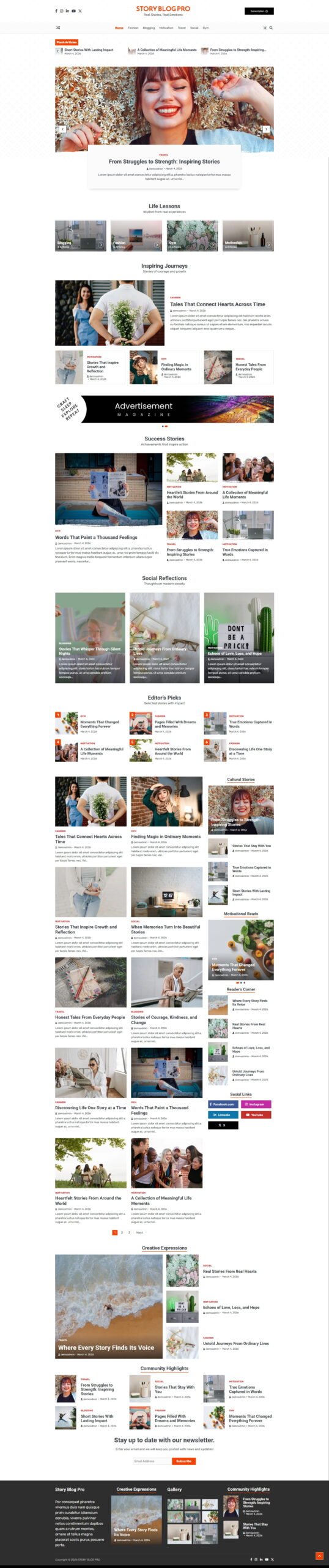 Story Blog Pro is a modern and elegant WordPress theme crafted for both personal and professional bloggers. It is fully responsive, SEO-friendly, and translation-ready, making it easy to connect with a global audience. With regular updates and dedicated support, you can concentrate on creating and sharing your content while we handle the rest. Start your blogging journey today with Story Blog Pro.