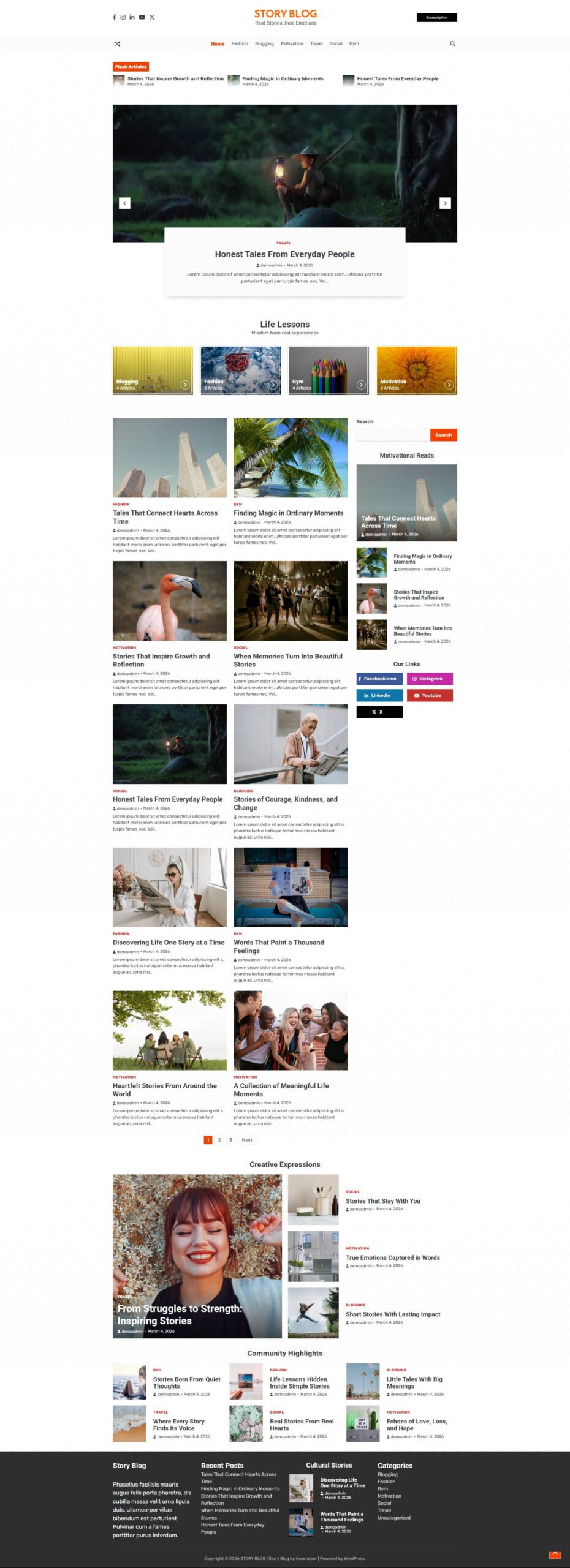Story Blog is a stylish and modern WordPress theme designed for both personal and professional bloggers. Fully responsive, SEO-optimized, and translation-ready, it helps you reach a wider global audience. With reliable updates and dedicated support, you can focus on sharing your content while we take care of everything else. Kickstart your blogging journey with Story Blog today.