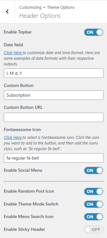 - In the Header Options, there are the following settings: