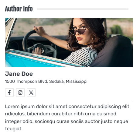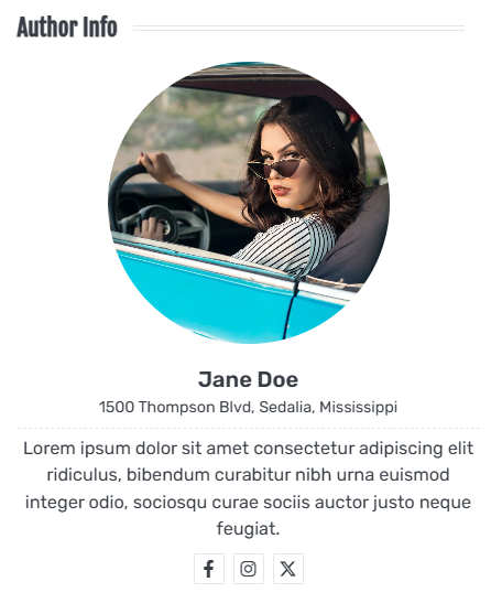 - Style 1: This style will display the Author Info widget as below: