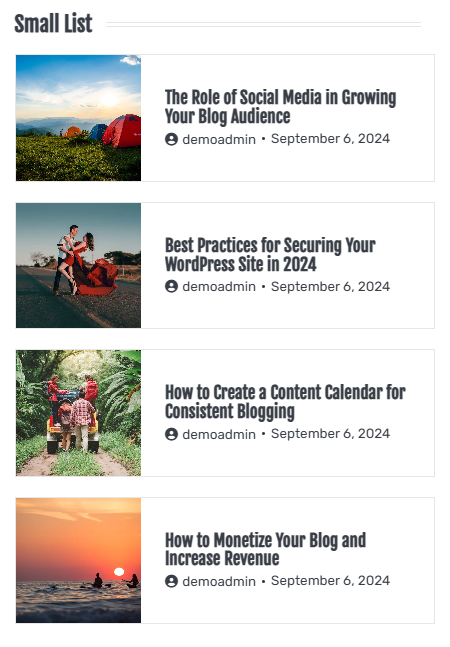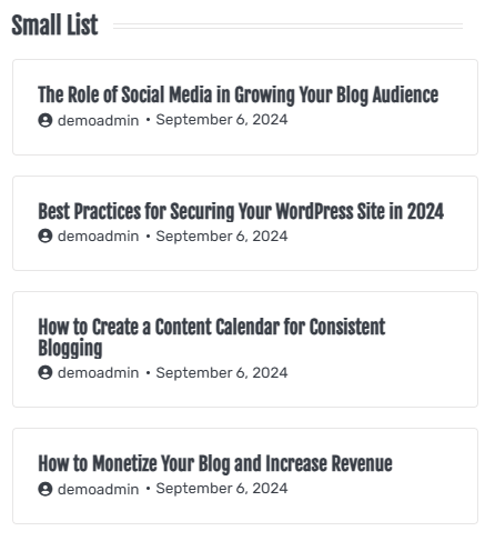 - Style 2: This style will display the Small List widget as below: