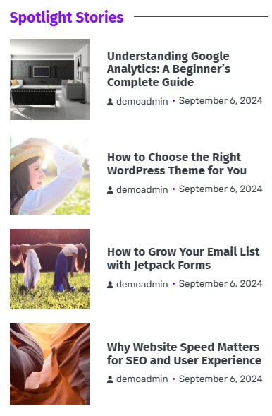 • To configure the Small List Widget, you need to navigate from  Admin Panel > Appearance > Customize > Widget > Widgets Section.