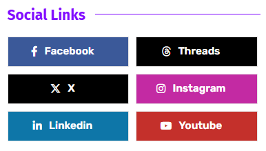 • Section Title: This setting allows the user to set the title for the first Social Icons Widget.