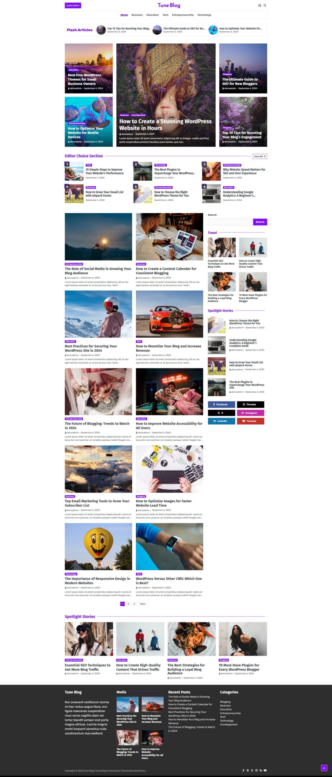 Tune Blog is a clean, modern WordPress theme crafted for bloggers who want a professional and eye-catching website. It’s fully responsive, SEO-friendly, and translation-ready, making it easy to connect with readers around the world on any device. With regular updates and dependable support, you can concentrate on creating great content while everything else is handled for you. Start your blogging journey with Tune Blog.